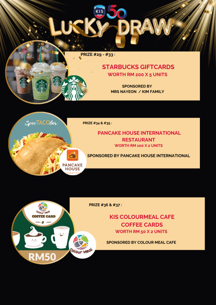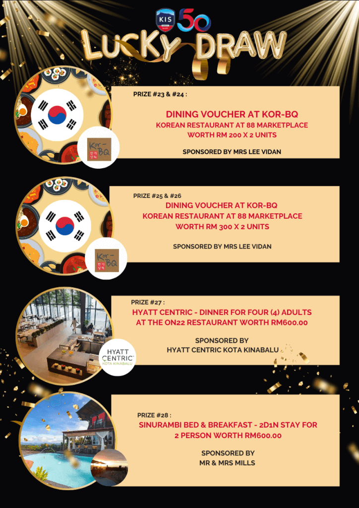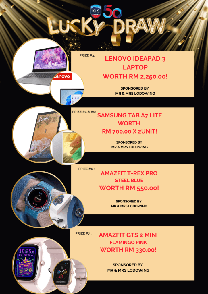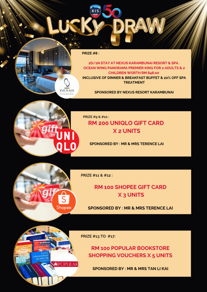 Lucky Draw Tickets: Lucky Draw tickets sales have begun and will continue next week. Each ticket costs RM10 each only. Check out the amazing prizes from gadgets, hotel stays, shopping and dining vouchers on offer worth over RM23K in total! Anyone can purchase the tickets (you do not need to attend the gala to purchase them). See the full and updated list of prizes here: https://bit.ly/KISLUCKYDRAW