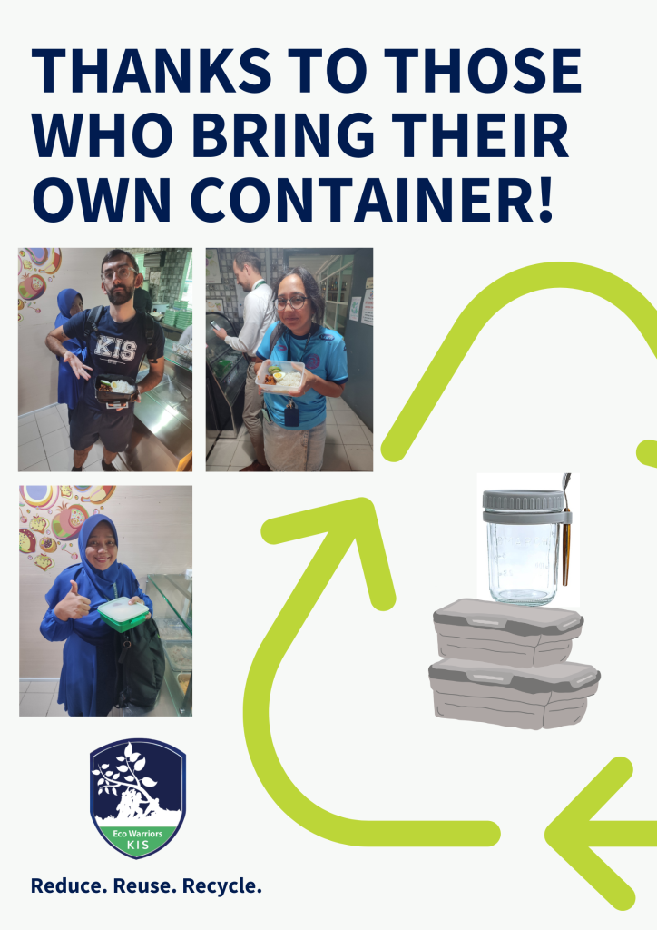 Don’t forget that we are still encouraging people to bring their own containers to the school canteen to buy anything other than the pre-ordered meals. This is to reduce the amount of single use packaging that KIS sends to the quickly filling landfill sites in Malaysia. After half term there will be a small charge for takeaway packaging. Thank you to everyone who is in great habits with this already.