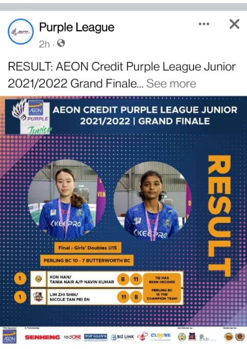 After Christmas I reported on Kon Han’s teams’ success in the preliminary rounds of the AEON Credit Purple League badminton tournament.