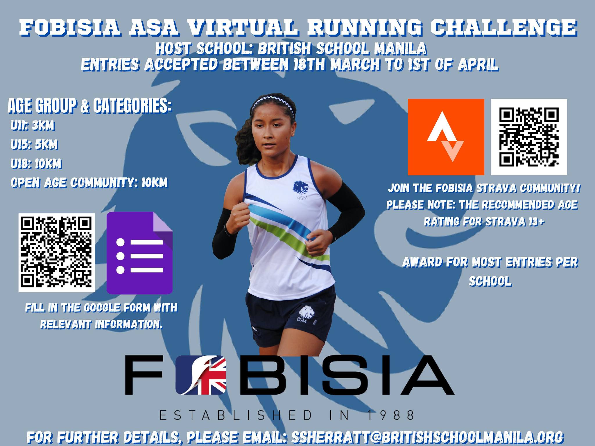 An alternative virtual event that is also an inclusive event open to ALL members of the KIS community whether they be students, staff or parents is the FOBISIA Virtual Running Challenge being coordinated by the British School of Manilla.