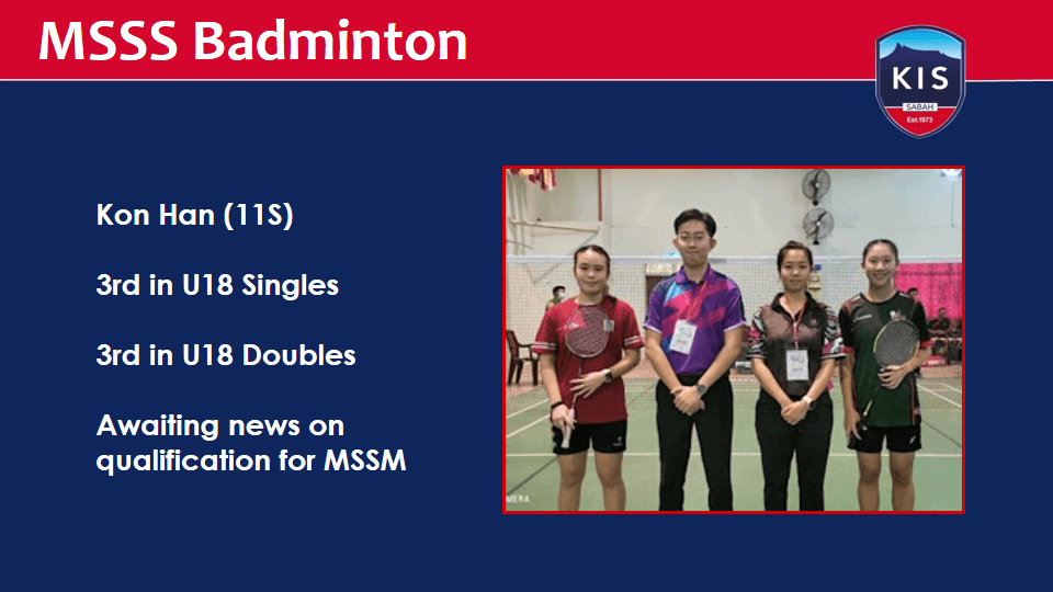 Our senior Sportswoman for 2022, Kon Han first won gold in both singles and doubles in the opening MSSD U18 Girls Badminton to qualify for MSSS which was held over the holidays. Like Jin Wei, Kon Han is at the lower range of the age group and so was up against some tough opposition. Despite this she managed to come 3rd in both singles and doubles which meant she only just missed selection to represent Sabah at the MSSM National Level. Despite the disappointment I am confident that I will be reporting on more of Kon Han’s competition successes throughout the year.