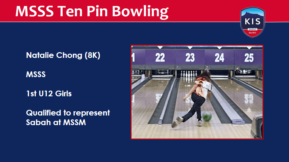 I was fortunate to be able to be in attendance at the Globowl Bowling alley in Center Point at the start of the month to watch Natalie take part in the U12 Girls MSSS Ten Pin Bowling tournament. Natalie is extremely dedicated to her bowling and has also been taking part in additional tournaments over the summer where she recently returned from Sarawak for one. She started the tournament well and was enjoying a commanding lead. However, one of her KK teammates managed to pull out some high scores in the later rounds to put pressure on her. Thankfully, Natalies consistently strong scoring across the 6 games saw her finish in 1st place! This means that she will now go on to represent Sabah at the MSSM event next month. We wish her all the very best of luck as she takes on Malaysia’s best junior bowlers!