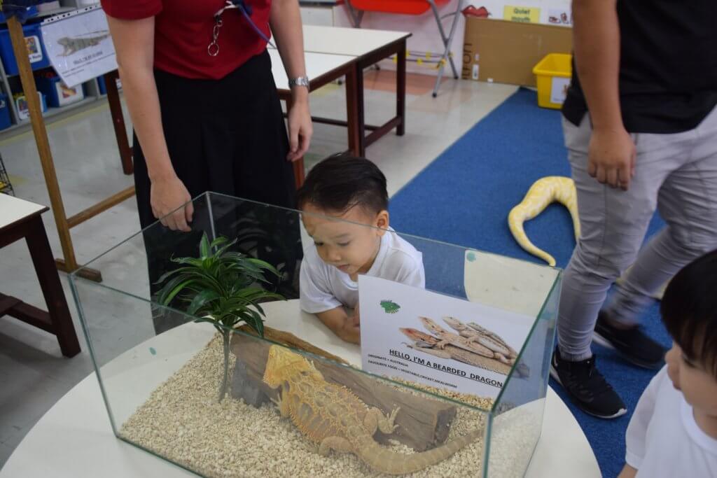 Friday proved to be a very busy day in primary with our Early Years children enjoying a visit from Borneo Reptiles. Over the past few weeks, the children in F2 have been learning about pets and have even brought a few of their own in from home. We have had a visit from Shelley the turtle, Fin the fish and two beautiful guinea pigs. As well as finding out about what animals eat, the children have also been learning about how to care for and handle different animals which made them well prepared for Friday’s visit. The children (and lots of excited staff) had the fantastic opportunity of handling a Burmese Python, a Crested Gecko, a Leopard Gecko, a Ball Python, a Corn Snake, a Cockatoo, a Bearded Dragon and an Iguana! I was so impressed by the children’s curiosity and respect for the animals. They were so brave to overcome their initial fears and every child had a go at handling at least one animal which is more than can be said for some adults (including me!) who did not manage to overcome their fears.