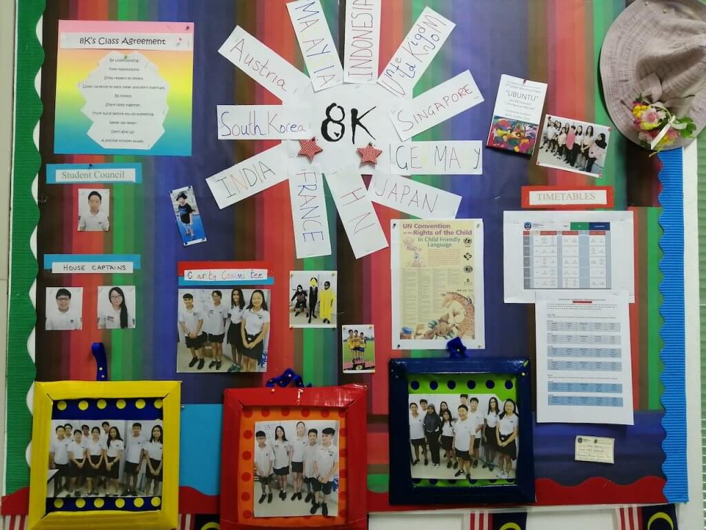 Most classrooms in the Secondary building are used as ‘homerooms’ for a class. Room S2A is the ‘home’ for 8K. Each room has a designated noticeboard for its resident class.