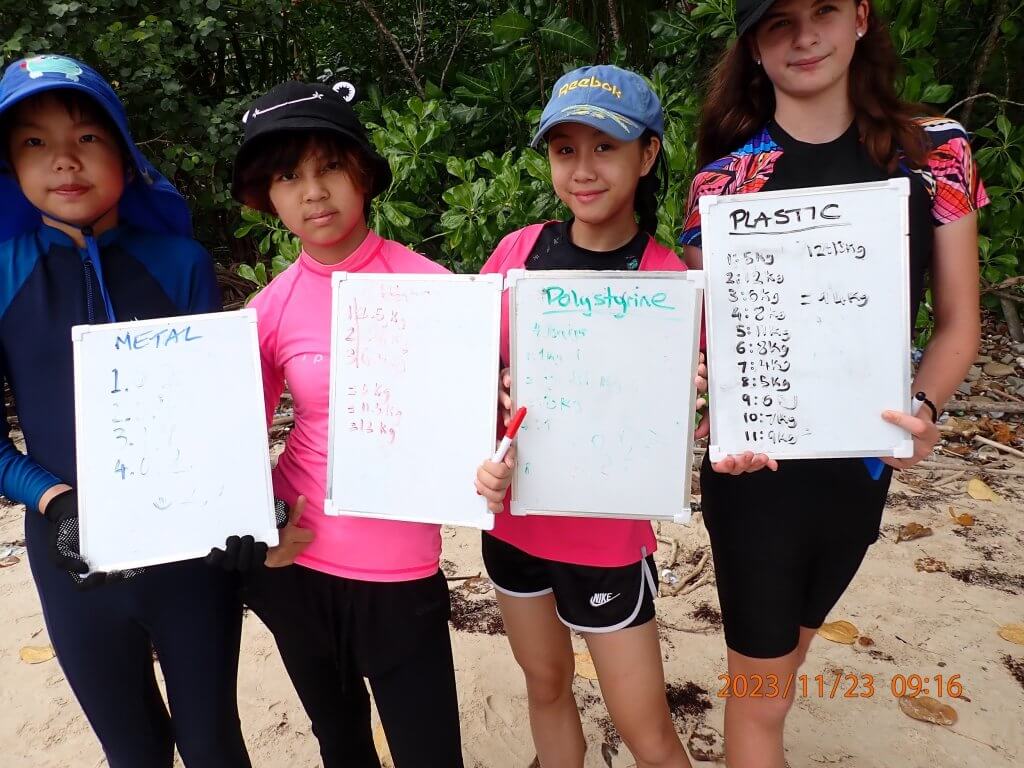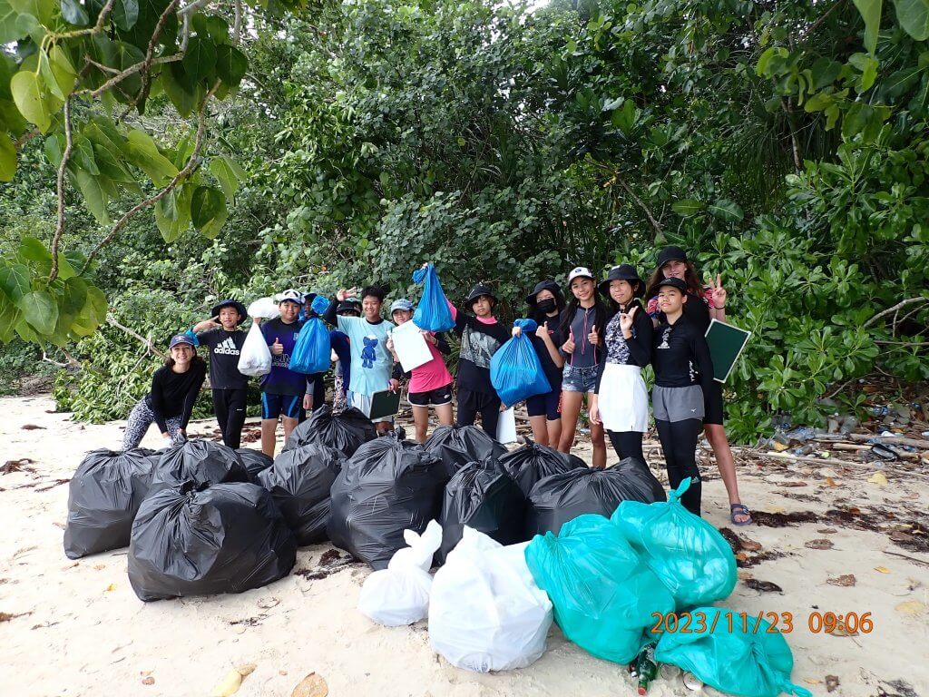 A competitive edge developed when the small group of 8K students on Thursday in their trash collection and weight in found that they had collected and recorded a higher total kg of plastic and other discarded materials from their 30 minute beach clean than 8S had recorded the day before. This was a taxing, tiring, slightly demoralizing yet rewarding activity to start our field Trip day in the KK Marine Park. With the support and help of the excellent Scuba Junkie team we cleaner a considerable amount from the small beach/ Bay on Gaya island, before then heading towards Padang Point and Sapi island for the next, highlight of the trip for many our snorkel comparison of two reef locations.