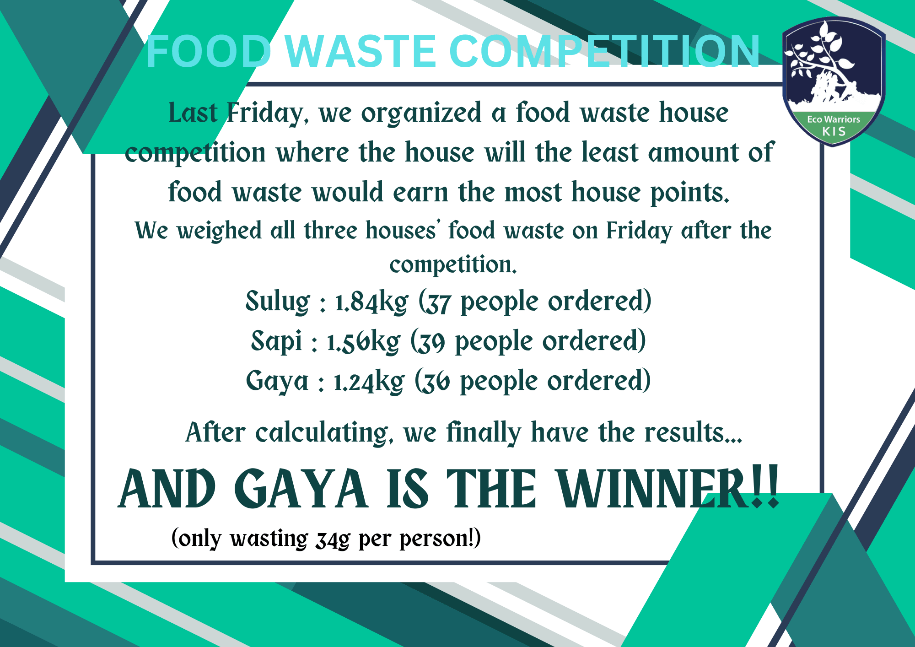 From the Eco Warriors: Well done Gaya!