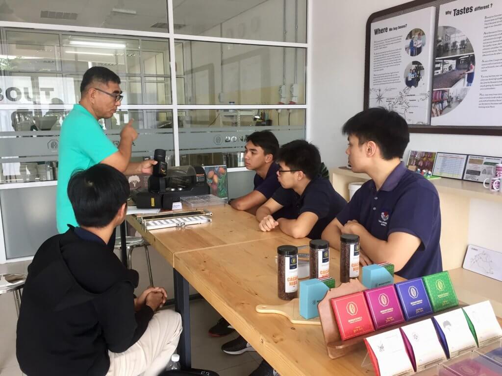 Mr Eddie Kim, the Managing Director of Bonaterra Cacao Mill & chocolate maker, welcomed us into his factory. He spoke to the students about how chocolate is made and the excellent cocoa beans that are grown here in Sabah. His finished products are very high quality chocolate bars and also cocoa nibs. After sampling the chocolate, we all agreed that the chocolate tasted amazing, and all of us ended up buying some!