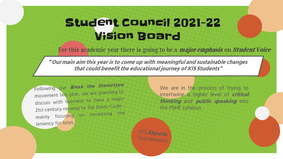 The Student Council is a place for students to have a voice within KIS and they are able to express what matters to them and their peers through this platform. Students can see that the staff and wider community of the school truly valuing their input into their school. Elections for committee members have been held this week and we are pleased to announce that the following will be very active in the Student Council this year:
