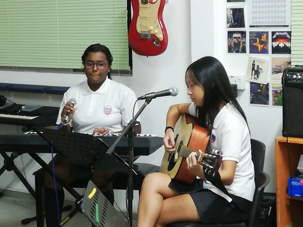This term in Music, the year 9’s have been developing their skills as songwriters. They begin with investigating songs and chord progressions and playing a song. This was followed by experimenting with chord order and various chord substitutions to create their own chord progressions and strumming patterns. With a theme of Social Justice, each student chose a topic dear to their heart and wrote lyrics and melodies over top theri chord progressions and strumming patterns to create an original song. The students then formed Bands to perform one of the songs adding in additional parts like piano, drums, bass, and even flute. The students showed dedication, creativity, and hard work to bring these performances to life. This is our first songwriters showcase here at KIS and we hope it is the start of more to come!