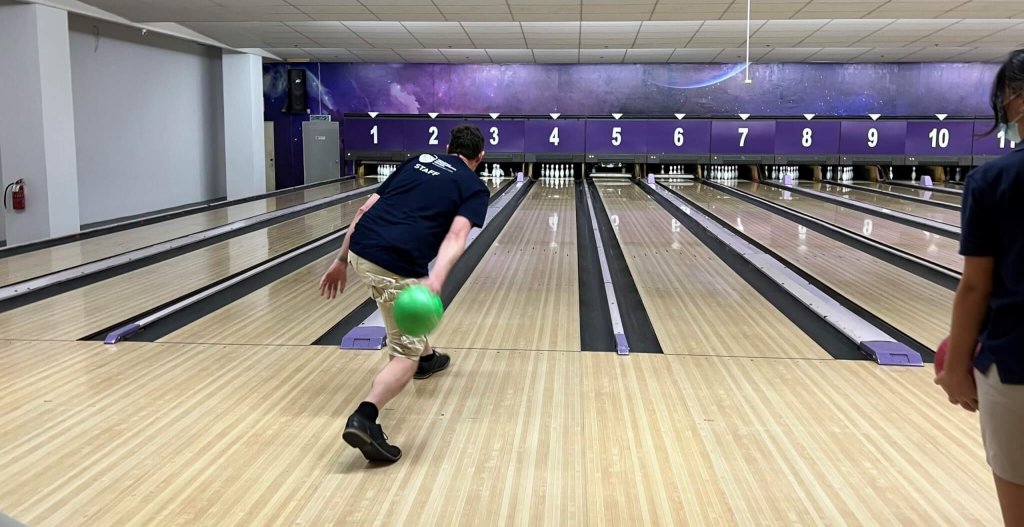 In the groups, there were a variety of players. There was Mr Clifford who was cheating, using his unfair advantage of height and long arms, meaning he managed to score the most out of anyone. MJ was another player who shone! Trying to curve his bowls by hurling them down the alley. Then, Mrs Colbeck who refused to play. But we all know she did that to hide her national-level bowling skills. Most importantly the birthday girl Ms Beresford! She used her spirit and skill to score a strike while on a call!
