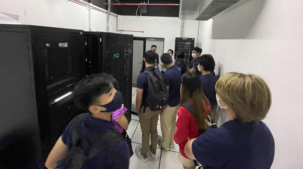 The SICC hall was polished and fancy, but the server room was in the parking lot. The room was chilled at 16 degrees, and our guide was introducing us to the fundamentals of their system. When we entered, cooling fans were buzzing throughout the room. One thing that surprised me was that all of the server’s cabling were built into the floor.