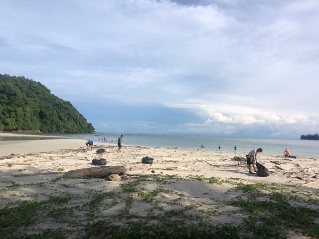 It was great to see so many people who had turned up to help with the International Coastal Clean-up at various beaches around the northern tip of Borneo at Tanjung Simpang Mengayau. The Kudat Turtle Conservation Society KTCS organised the event and we had a waste skip from the council and biodegradable rubbish bags. It was an early start at 7am and it was a hot day.
