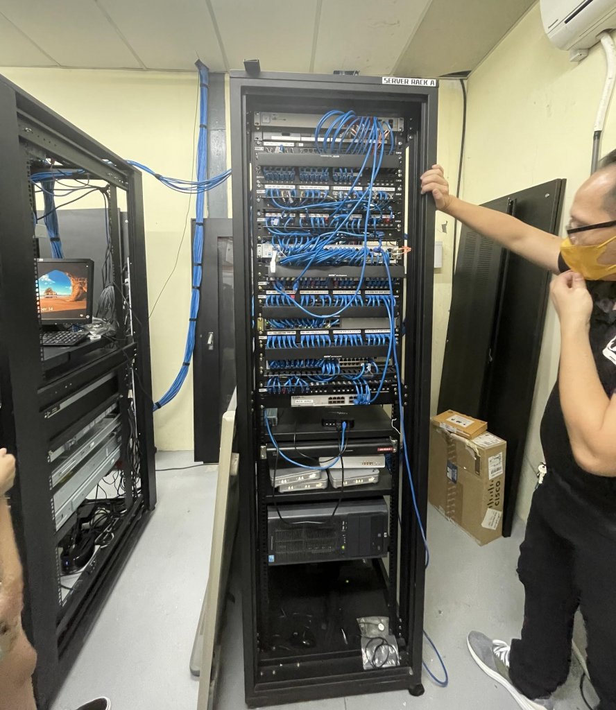 Additionally, in RACK A, there were two network routers, each having a network speed of 800MB respectively, totalling up to 1600MB. On top of that, they also had 8 batteries which weighed 80kg each, potentially powering the server for up to two days after a blackout. Another point that surprised us was the amount of cables being used and the price. The cables alone cost upwards of RM50,000 at RM450 each.  and also the size of the storage capacity as it was 6 terabytes. Compared to SICC’s server, it was really compact.
