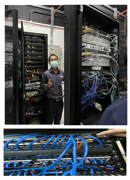 Stepping into the sci-fi-looking room, the guide, an IT specialist from SICC, went through all the hardware. Many safety precautions were prepared to take care of the data in the event of an accident, eg. an extensive fire safety system. The entire room is cooled by multiple air conditioners to ensure that the servers don’t overheat. Apparently, all the wires run under the flow, which is why it feels hollow.