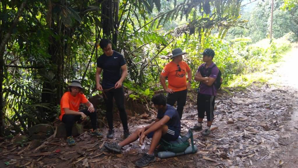 We woke up to a slightly overcast sky, accompanied by a slight drizzle to begin our morning routine of getting washed and preparing our food. After our preparation we went into our groups, checked our bearings, filled our water bottles and headed off. The beginning of the journey was mostly flat land with occasional hills and various junctions along the main road in we then had to navigate through to find the correct path. We then reached a small junction with a gravel path, and this was the start of our grueling hill climb. 6km of tough uphill climb faced us as we hauled our 15kg backpacks along with us, and the weather did not treat us kindly as the sun beat down on us. Only the meager shade of the overhead trees provided momentary respite from the blazing heat that drained us. As we marched uphill the humidity of the rainforest truly began draining us of our bodily fluids as we sweated profusely throughout the uphill climb. After 3 hours we finally caught up with the other group and reached the top as one of our group members was not fully physically prepared which caused unforeseen issues. After our brief lunch break we began downhill on a very steep green path covered in wet moss; the descent was slower than the ascent and cautious footing was the best approach. When we finally reached the bottom we refilled our water and headed onto the last leg of our journey to finish the day off. The last leg was shorter than the previous legs but it was harder to navigate; many offshoots and side paths constantly had us questioning our decisions, keeping us on our toes [even though our feet were horribly sore and painful!]. When we finally found our way through the many winding paths we came across a bridge that lead to the camp. We began our journey at 8:45am and reached the camp at 5pm, a total of roughly around 8hrs and 45min of walking. We finally reached our destination after our morale had been ground down by the physical discomfort and the adverse weather. We reached our destination and for the first time in 8 hours, smiles were everywhere.