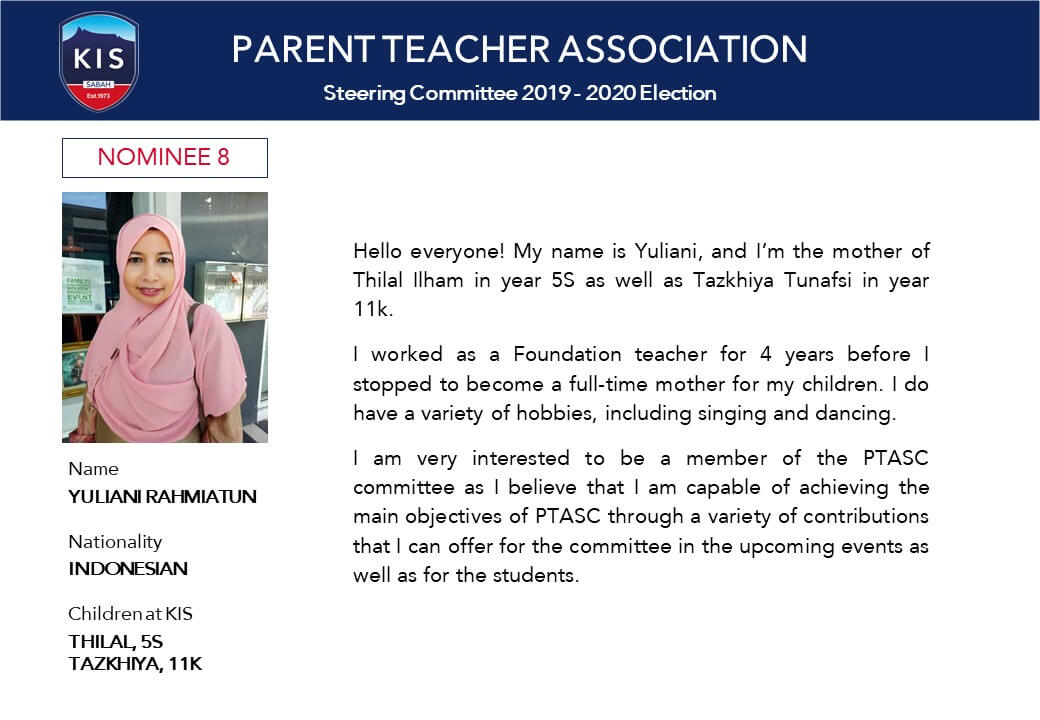 There are 10 positions to be filled in the Steering Committee and, so far, 10 generous parents have stepped forward as nominees. Check them out!