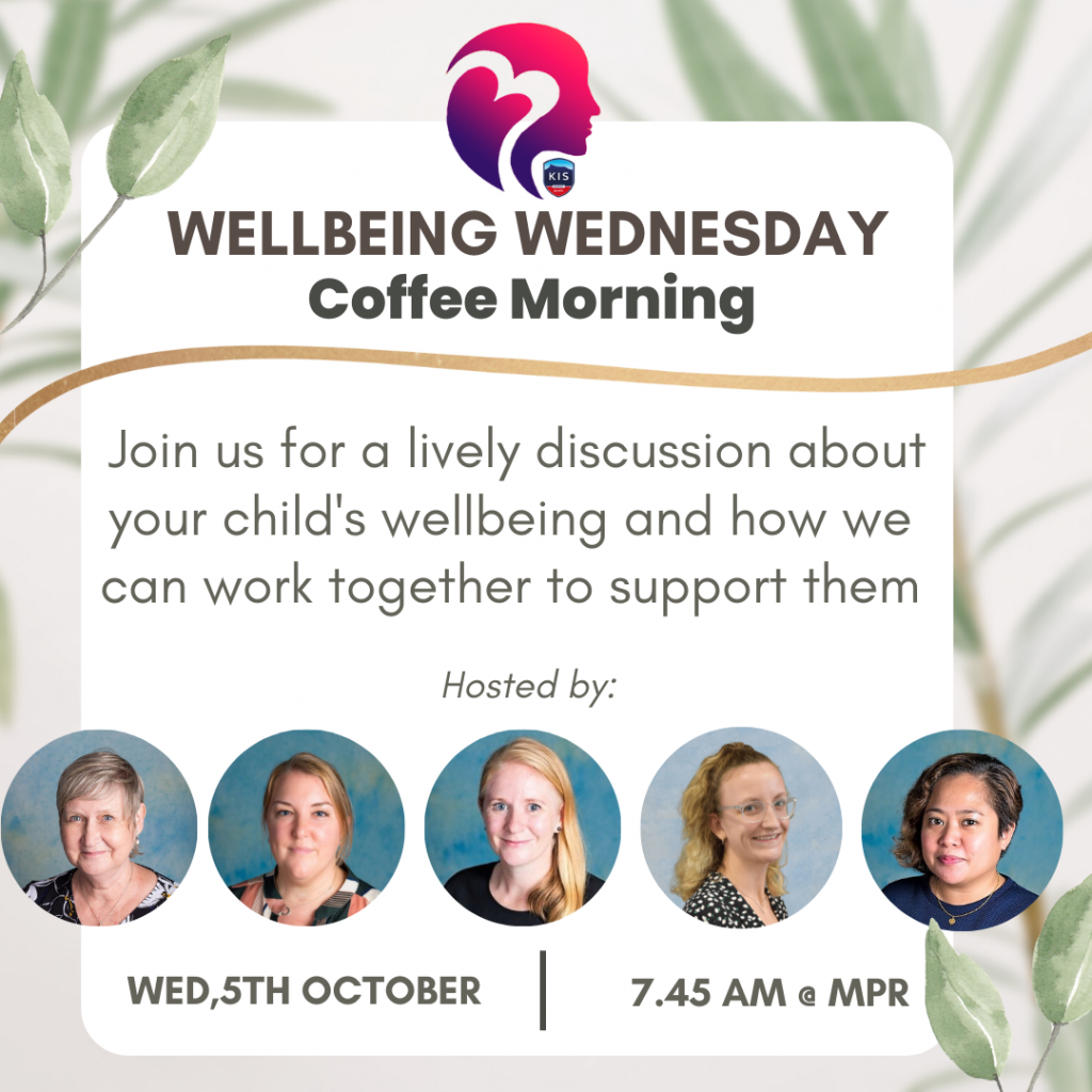 We are also pleased to host the first ‘Drop off, Drop-In Coffee Morning’ in conjunction with the KIS Care Week on Wednesday, 5th October. We invite parents /guardians to join us for a lively discussion about your child’s well-being and how we can work together to support them.